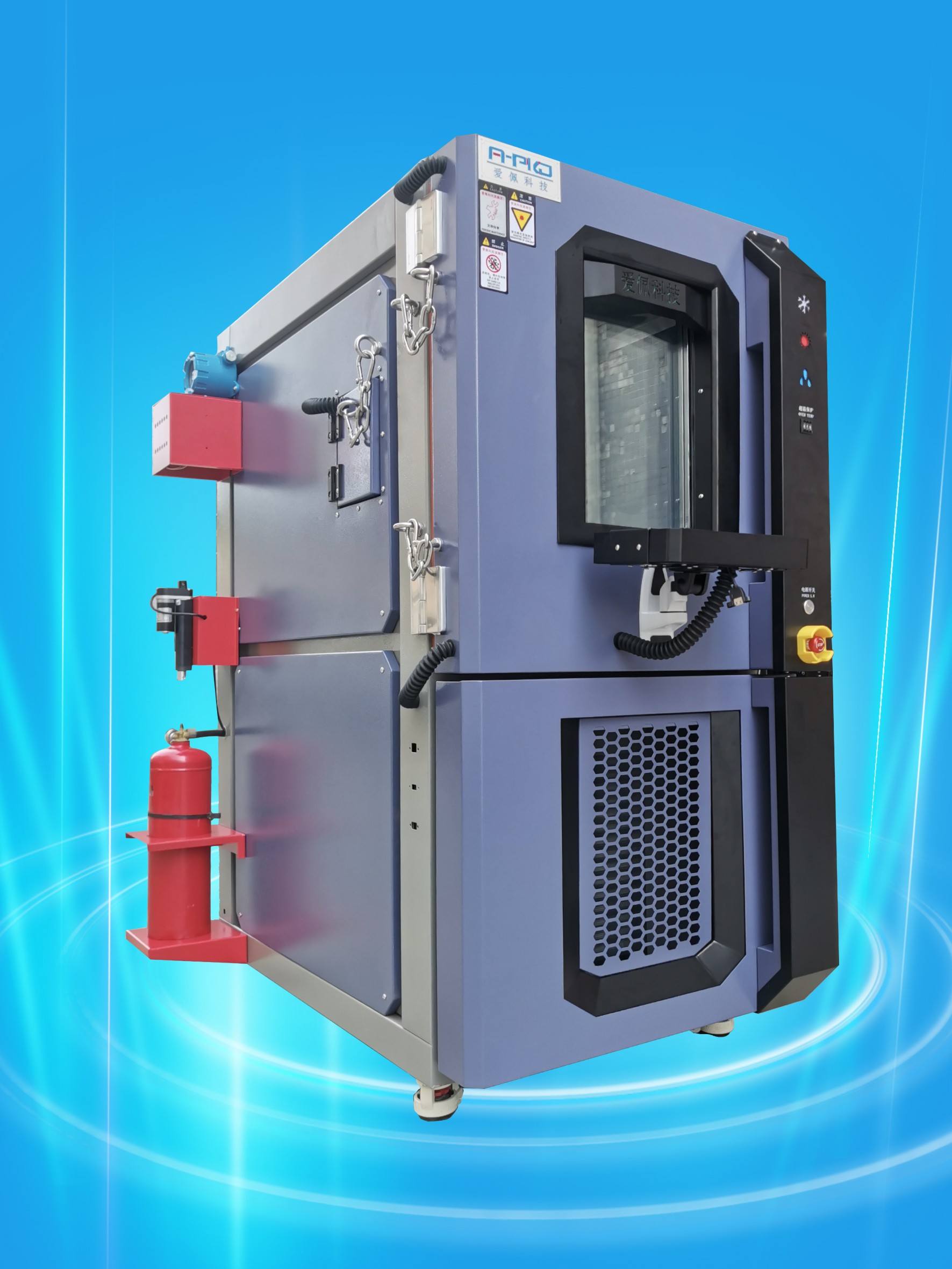 大型觀測視窗附照明燈保持箱內明亮,且利用發熱體內嵌式多層防爆玻璃,隨時清晰的觀測箱內狀況。