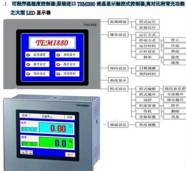 - 微電腦恒溫恒濕試驗機(jī)是一款由微電腦(進(jìn)口可編程觸摸屏控制器)所操控并具備恒溫恒濕功能可做試驗的機(jī)器。愛佩科技使用的高科技人機(jī)介面全觸摸控制器具有眾多功能按鈕欄:用于切換到其他功能界面。“運(yùn)轉(zhuǎn)/停止”按鈕,用于啟動和停止設(shè)備運(yùn)行。在“定值”模式下,可以切換到“定值設(shè)定畫面”。在“程式”模式下,可以切換到“程式設(shè)定畫面”。監(jiān)視參數(shù)顯示欄:顯示溫度和濕度的當(dāng)前測量值和設(shè)定值等。運(yùn)行信息提示欄:顯示運(yùn)行之相關(guān)信息。溫度/濕度整定按鈕:用于自動整定溫度和濕度之PID控制參數(shù)。顯示/隱藏按鈕:用于選擇是否顯示該監(jiān)視變量對應(yīng)之曲線。左移和右移按鈕:用于移動曲線。刪除曲線:將當(dāng)前顯示的曲線刪除掉。